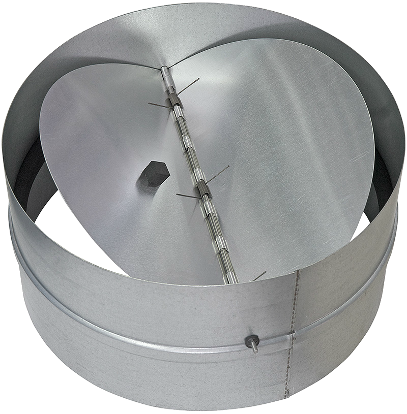 Обратный клапан 355СКЦ с  подпружинными лопастями  обеспечивает автоматическое  перекрывание круглых воздуховодов  при выключении вентилятора.
